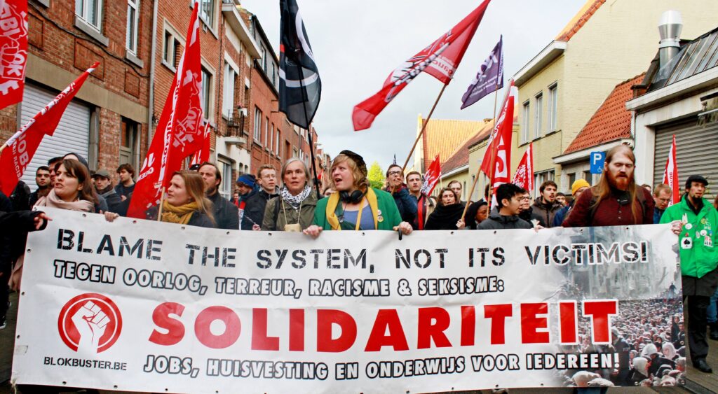 Deze aanvallen op de solidariteit van de werkende klasse zijn geen lokaal Belgisch gegeven, het is een wereldwijd fenomeen. In de VS worden migranten gewapenderhand opgespoord en naar kampen gedeporteerd. Aan de grenzen van Europa doen de troepen van Frontex in beestachtigheid niet onder voor hun Amerikaanse tegenhangers van ICE. En het NSV en co juichen dit toe. Voor hen wordt de barbarij liefst nog wat opgedreven. Ze komen vandaag op straat om op te roepen voor deportaties van vluchtelingen en migranten, met heimwee naar het nazisme van de jaren ’30.